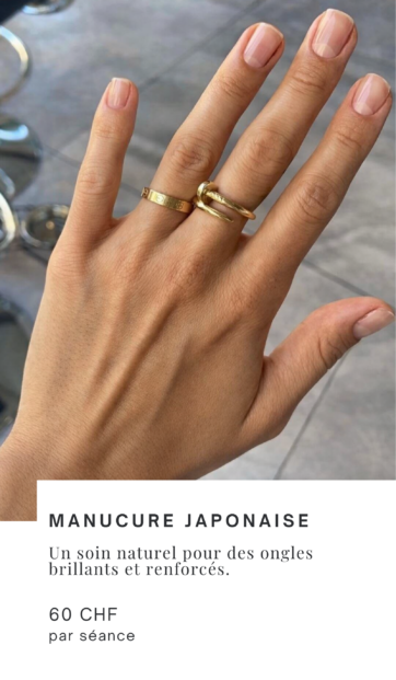 L’offre est complétée par des prestations de beauté naturelle, telles que la manucure japonaise, un soin des ongles qui nourrit, renforce et révèle leur brillance sans vernis.